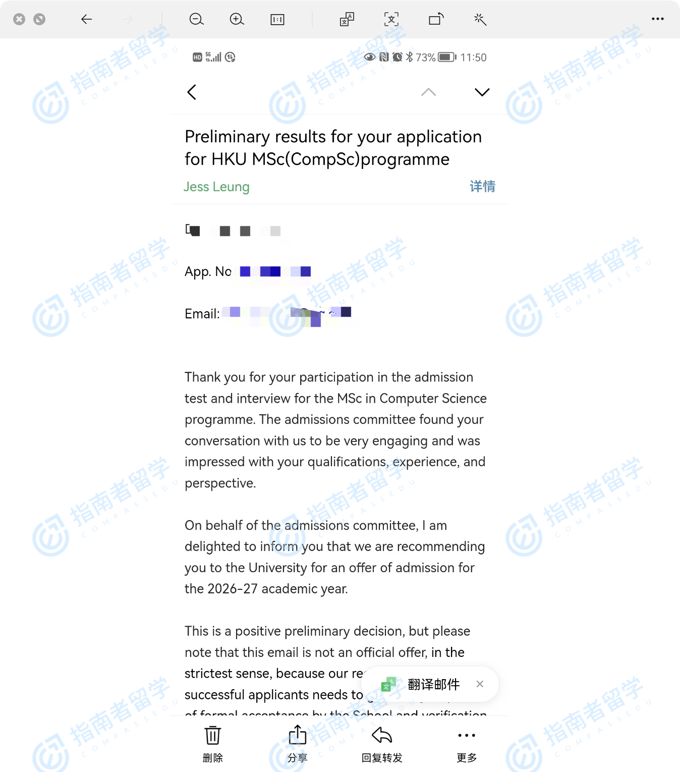 香港大學計算機科學理學碩士(常規(guī)方向)研究生offer一枚