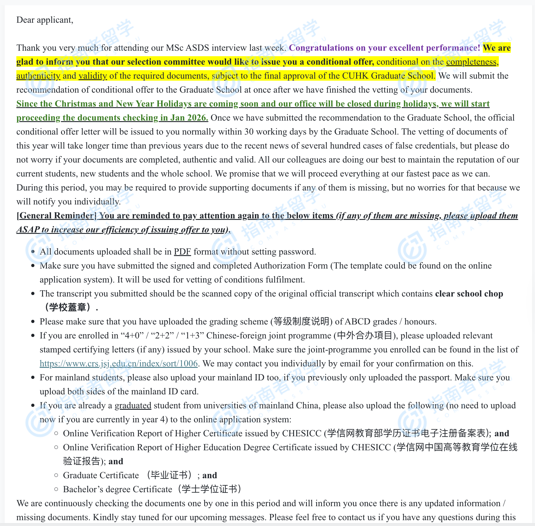 香港中文大學(xué)統(tǒng)計(jì)與數(shù)據(jù)科學(xué)高級(jí)研究理學(xué)碩士研究生offer一枚