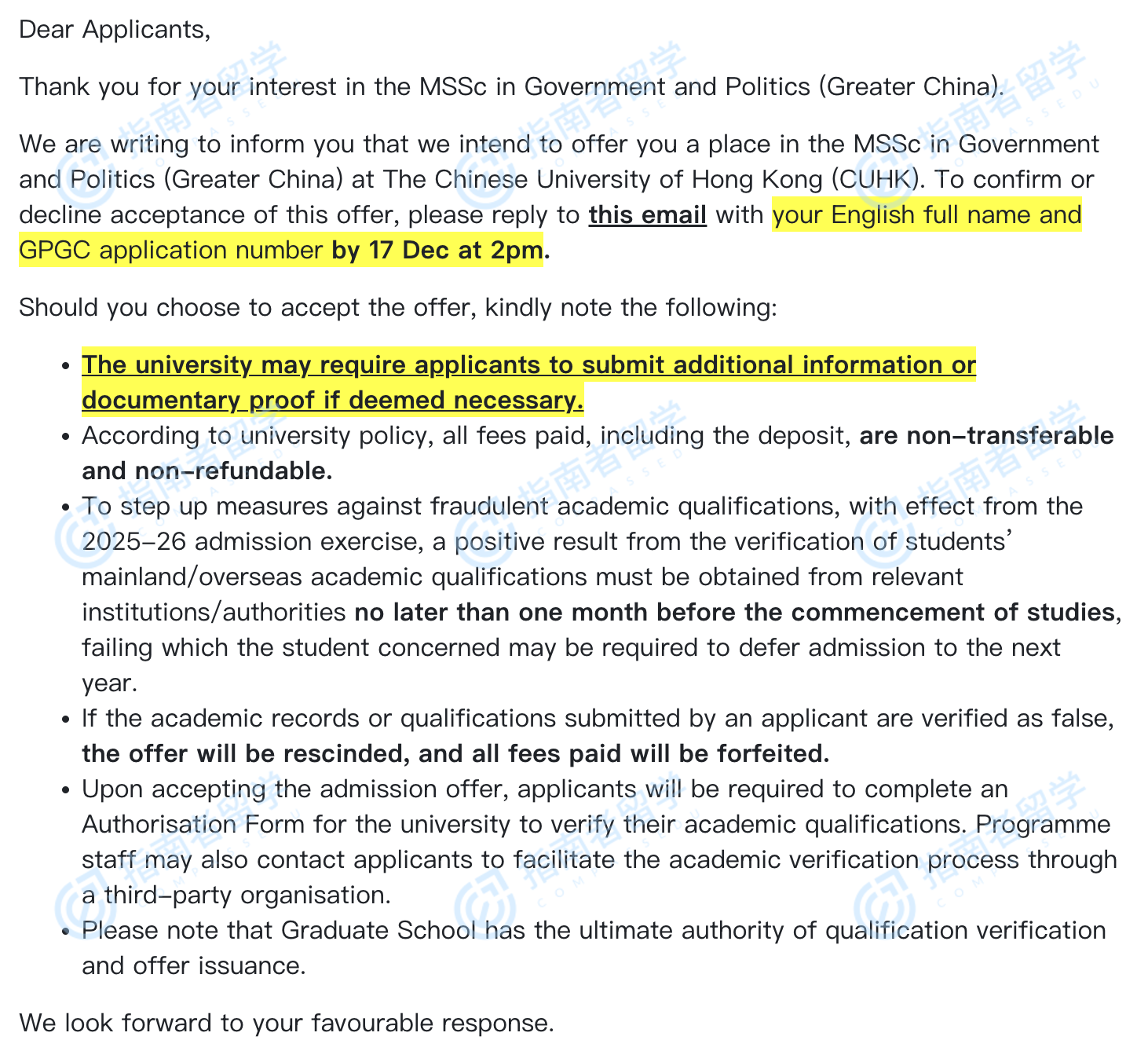 香港中文大學(xué)大中華地區(qū)的政府與政治社會(huì)科學(xué)碩士研究生offer一枚