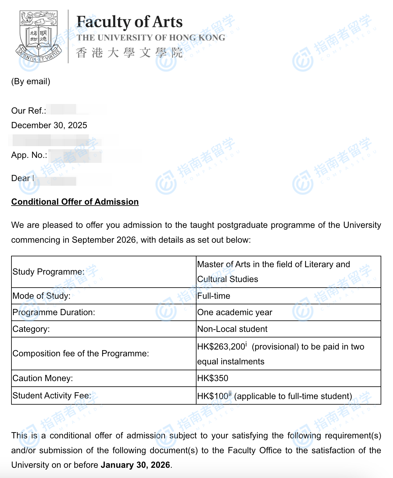 香港大學(xué)文學(xué)與文化研究文學(xué)碩士研究生offer一枚