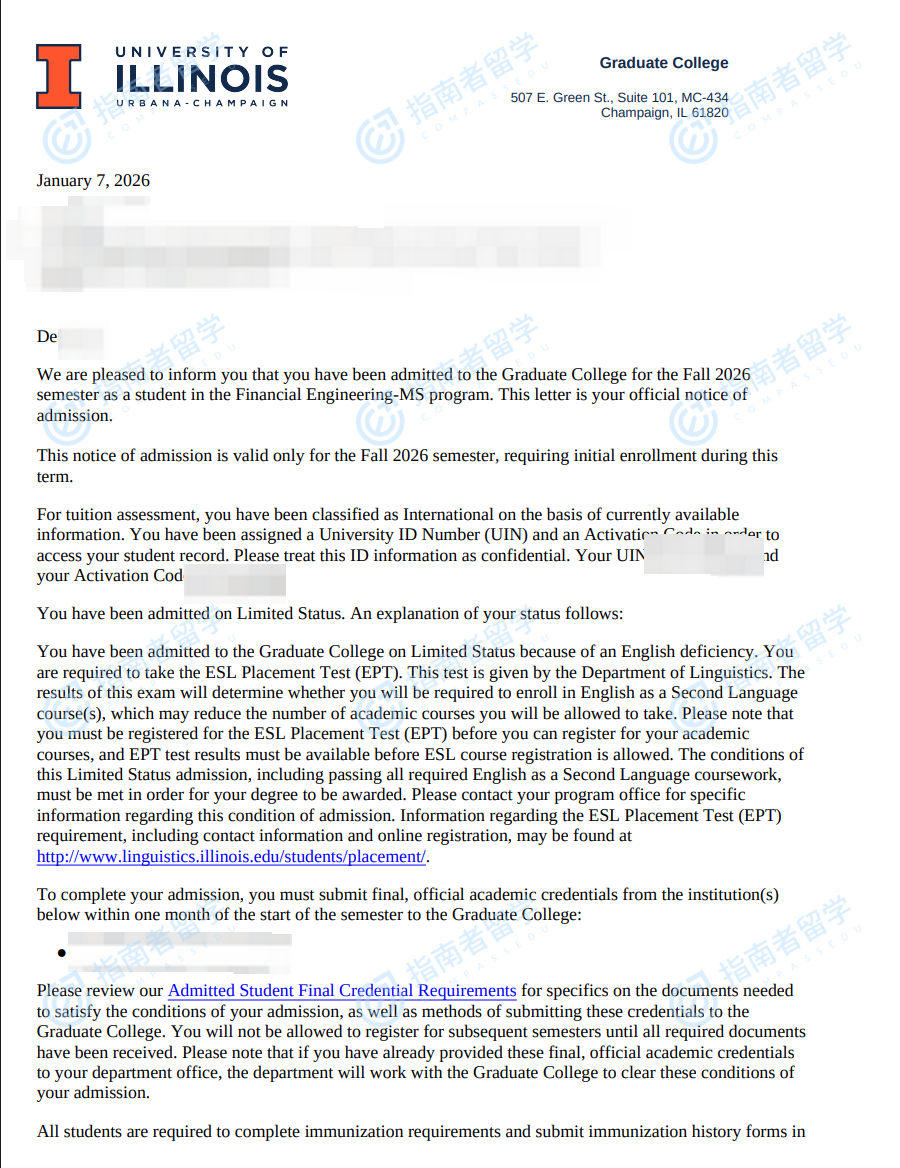 伊利諾伊大學(xué)香檳分校金融工程碩士研究生offer一枚