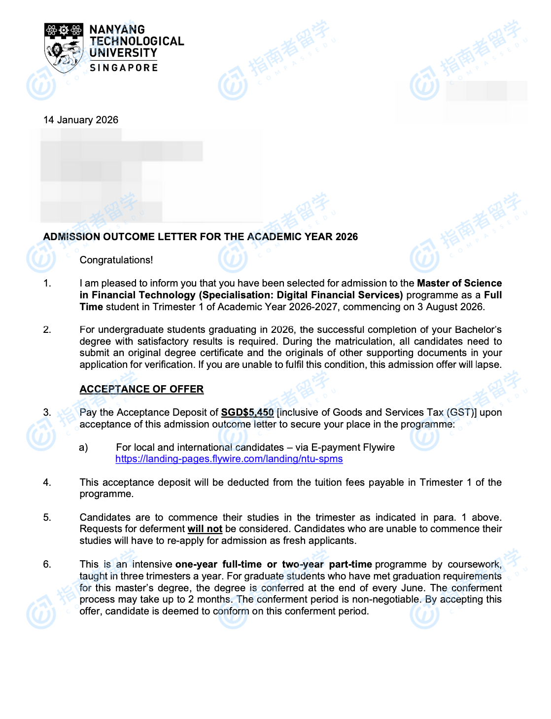 南洋理工大學(xué)金融科技理學(xué)碩士(數(shù)字金融服務(wù))研究生offer一枚