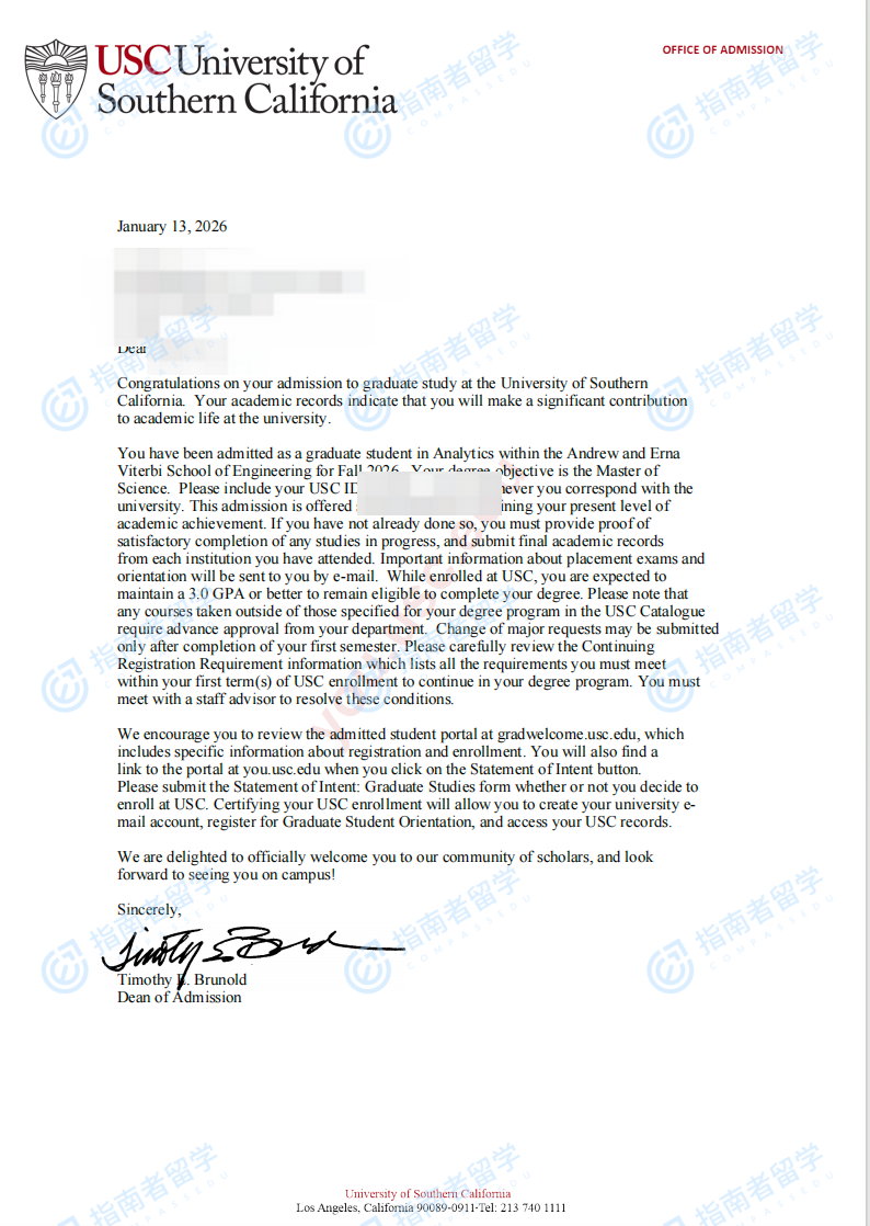 南加州大學(xué)分析學(xué)碩士研究生offer一枚