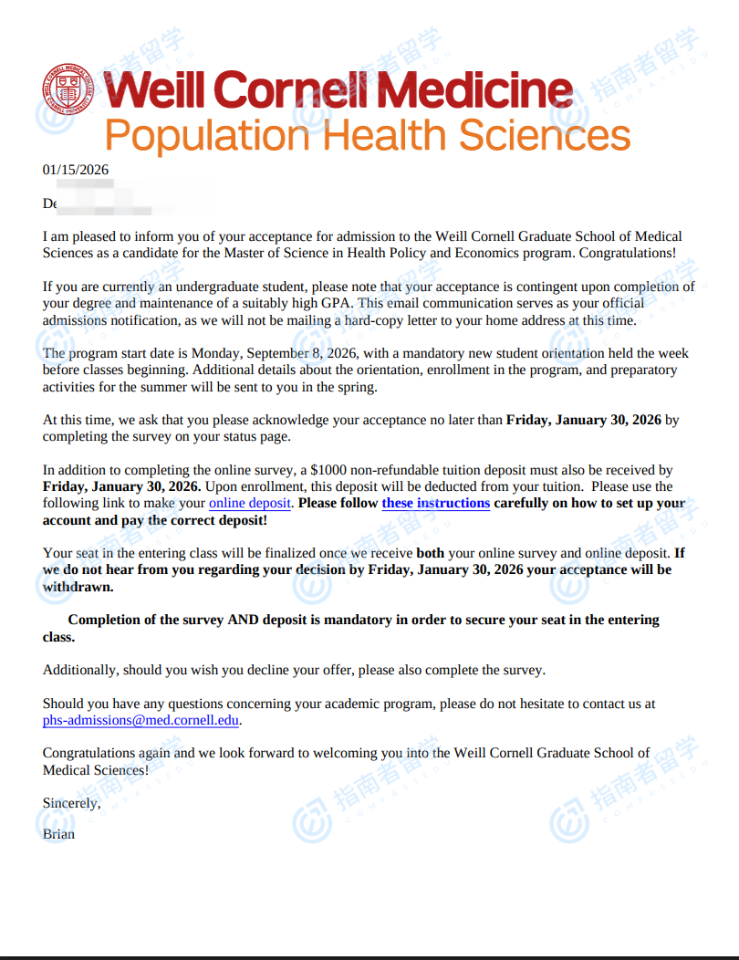 康奈爾大學(xué)衛(wèi)生政策與經(jīng)濟(jì)學(xué)碩士研究生offer一枚