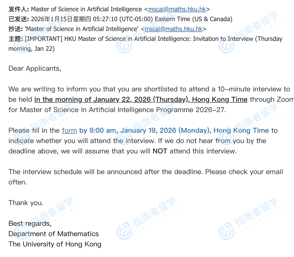 香港中文大學公共健康碩士研究生offer一枚