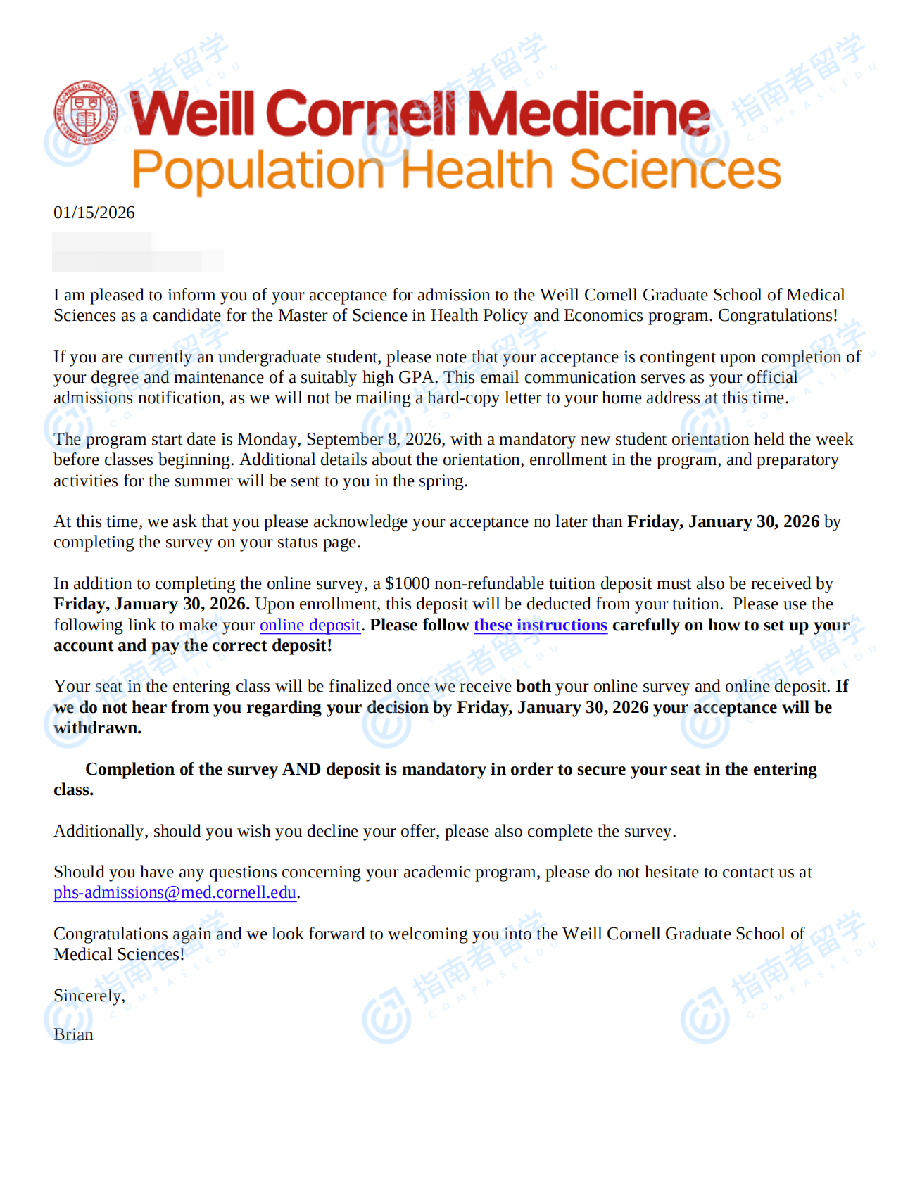 康奈爾大學(xué)衛(wèi)生政策與經(jīng)濟(jì)學(xué)碩士研究生offer一枚