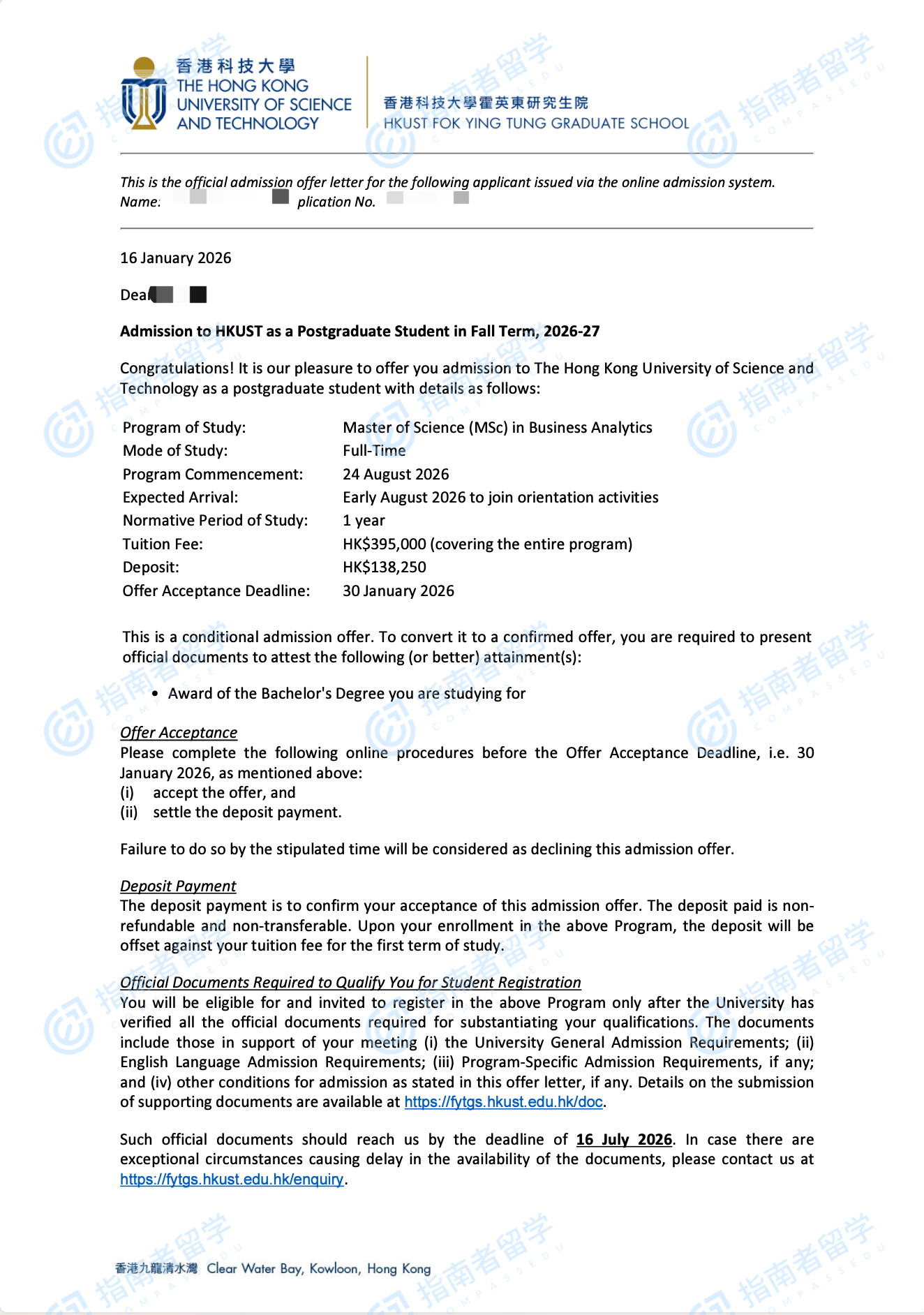 香港科技大學商業(yè)分析理學碩士研究生offer一枚