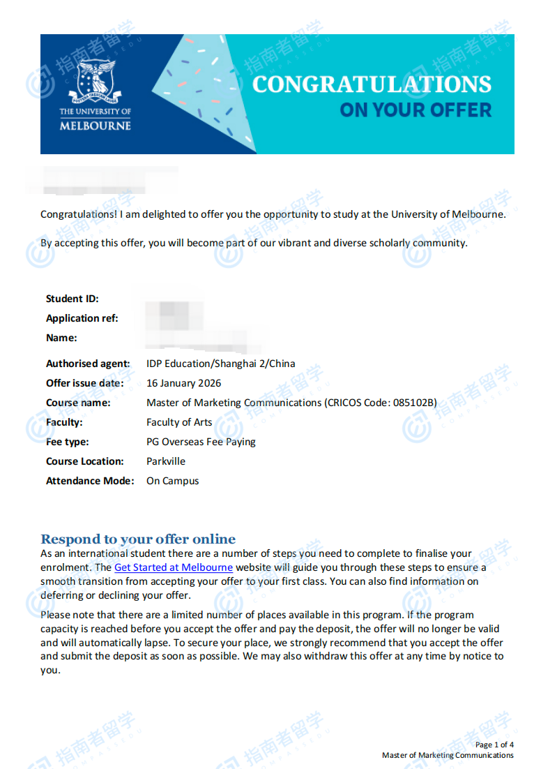 墨爾本大學(xué)營銷傳播學(xué)碩士研究生offer一枚