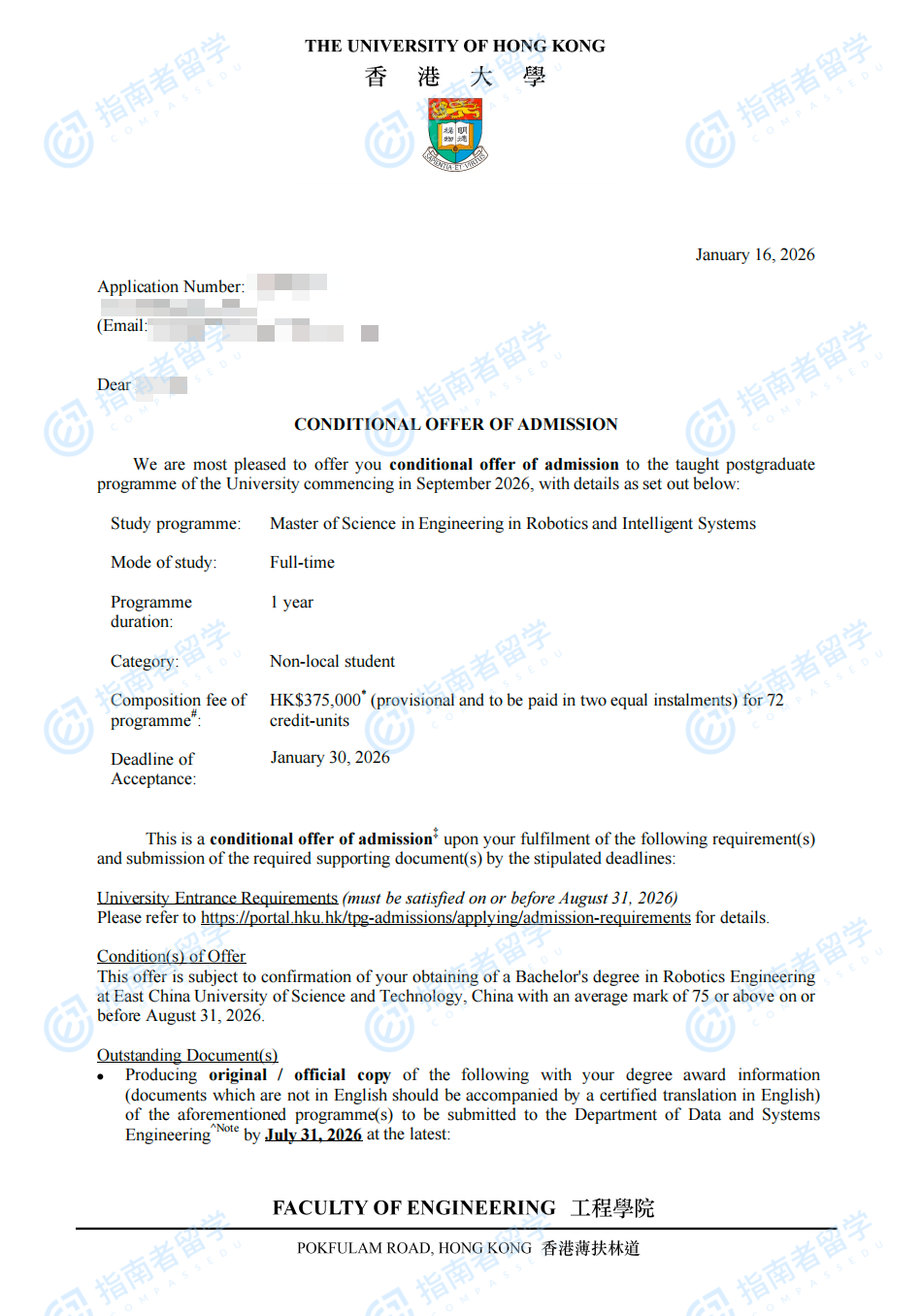 香港大學機器人與智能系統(tǒng)(工程)理學碩士研究生offer一枚