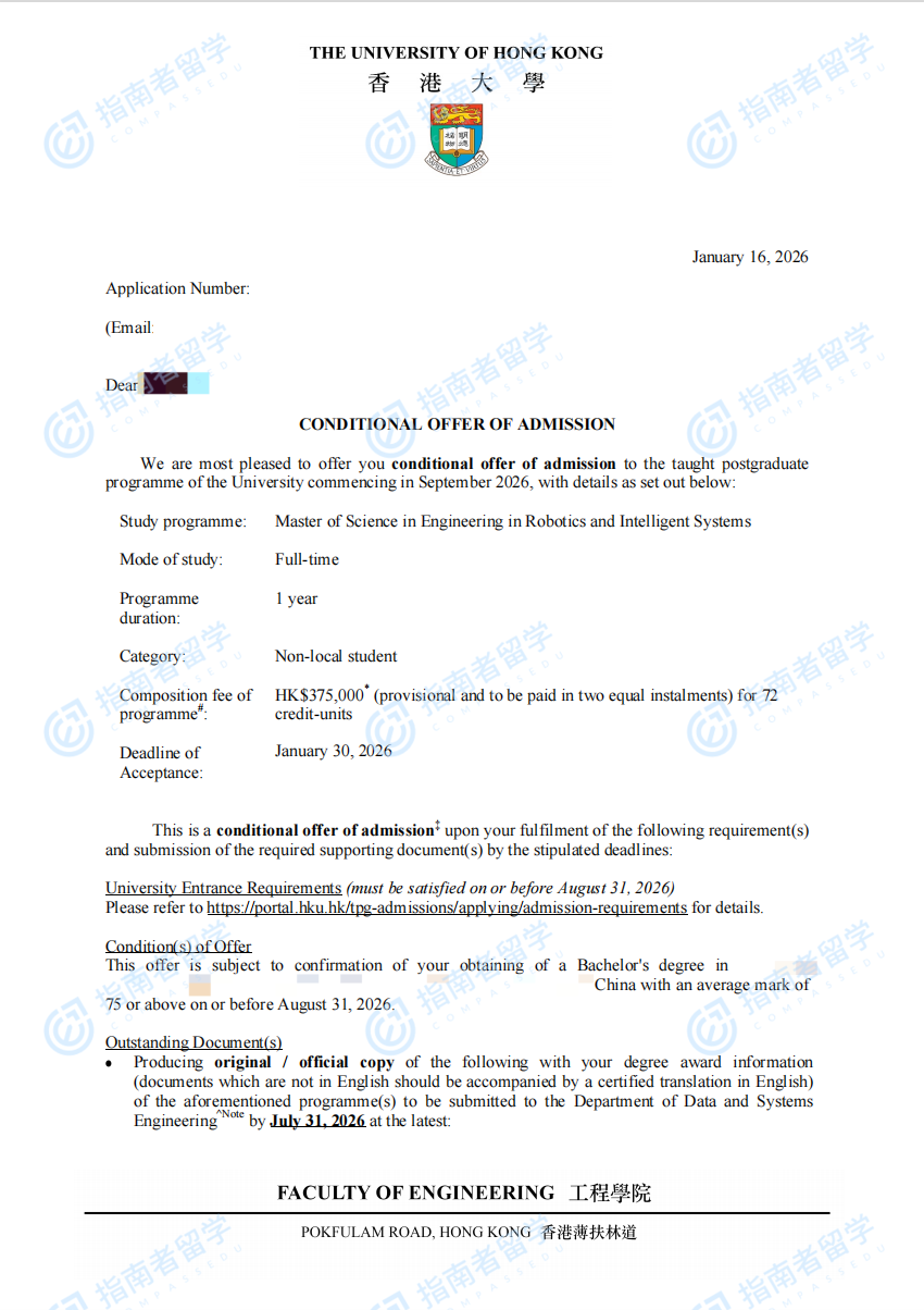 香港大學(xué)機(jī)器人與智能系統(tǒng)(工程)理學(xué)碩士研究生offer一枚