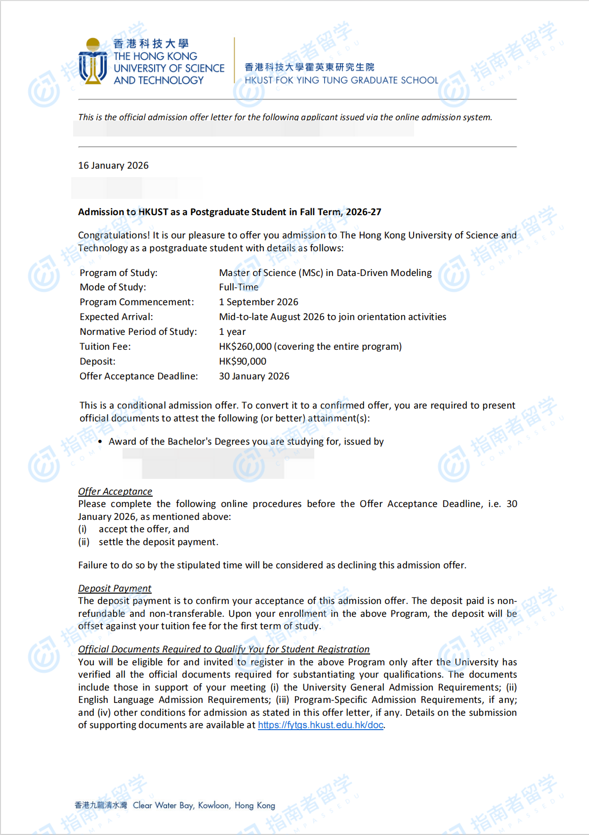香港科技大學(xué)數(shù)據(jù)驅(qū)動建模理學(xué)碩士研究生offer一枚