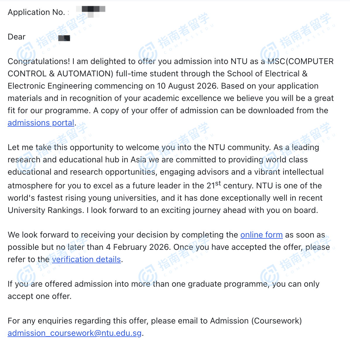 南洋理工大學(xué)計(jì)算機(jī)控制與自動(dòng)化理學(xué)碩士研究生offer一枚