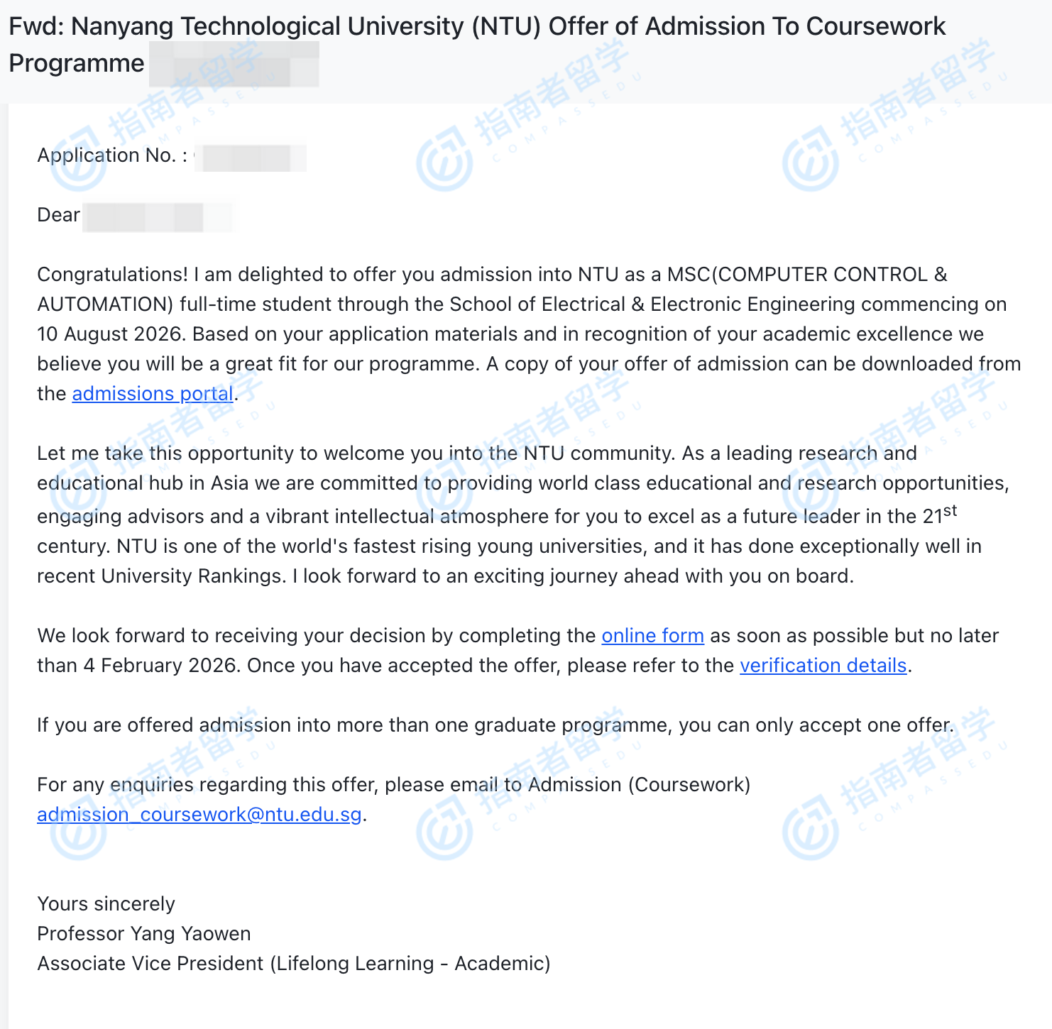 南洋理工大學(xué)計(jì)算機(jī)控制與自動(dòng)化理學(xué)碩士研究生offer一枚