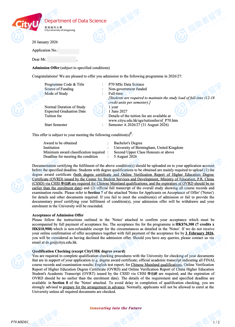 香港城市大學(xué)數(shù)據(jù)科學(xué)理學(xué)碩士研究生offer一枚