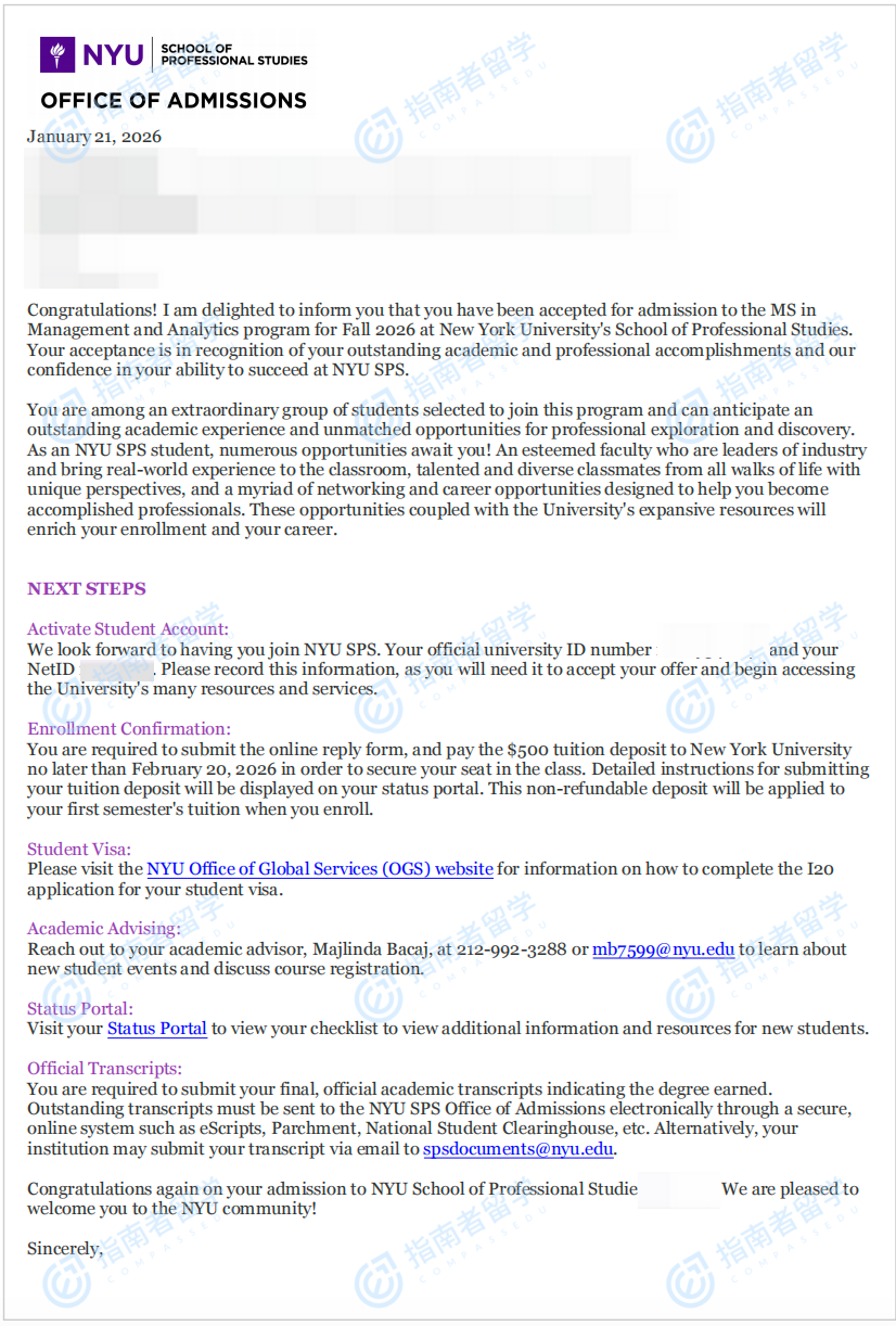 紐約大學(xué)管理與分析理學(xué)碩士研究生offer一枚