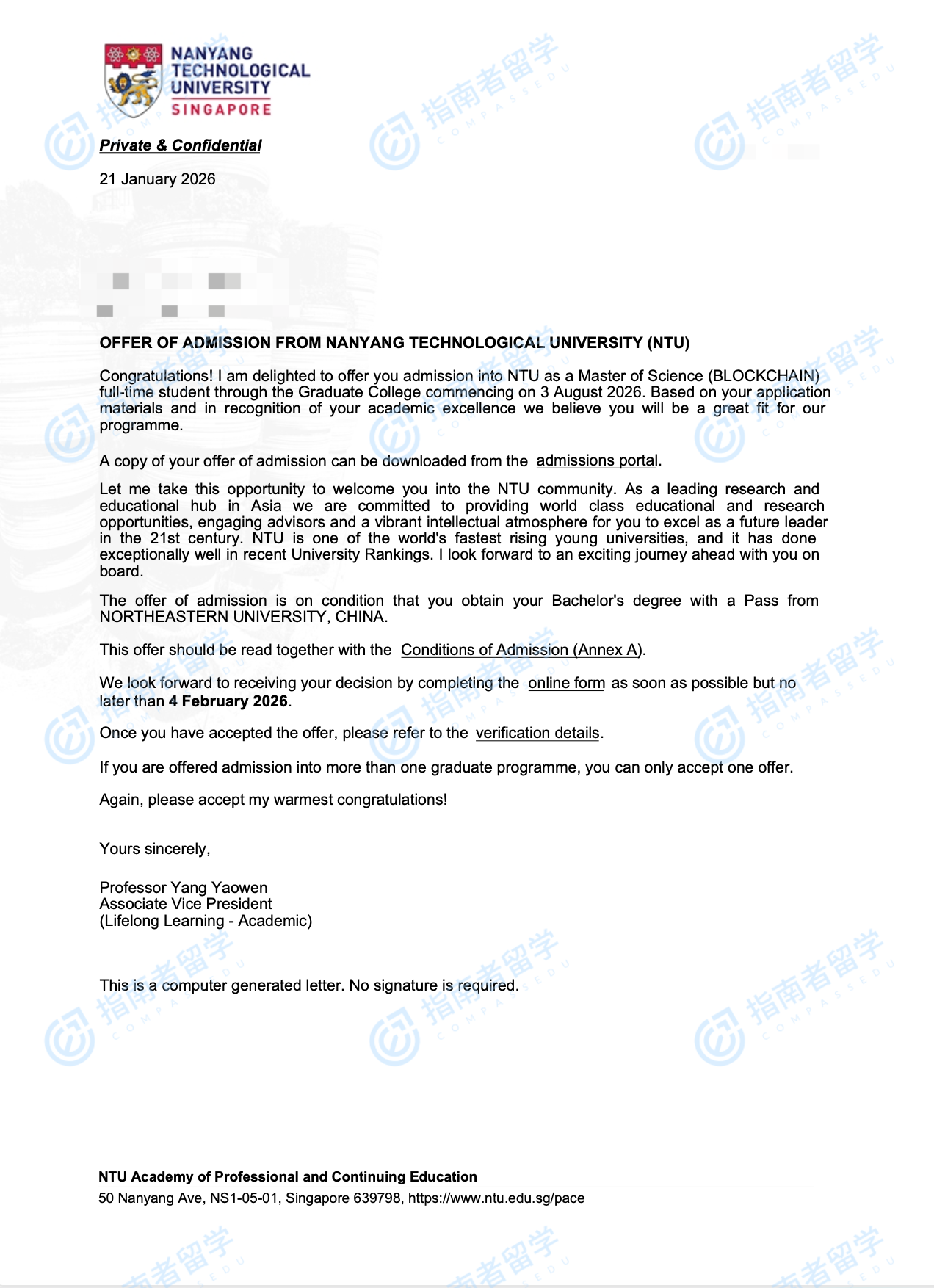 南洋理工大學(xué)區(qū)塊鏈理學(xué)碩士研究生offer一枚