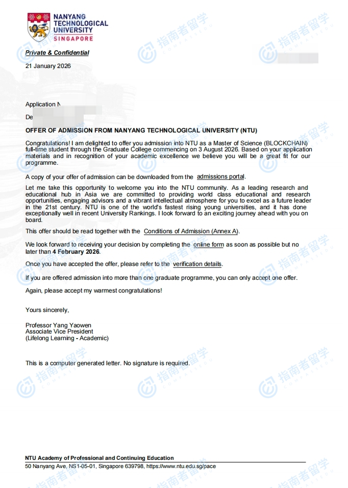 南洋理工大學區(qū)塊鏈理學碩士研究生offer一枚