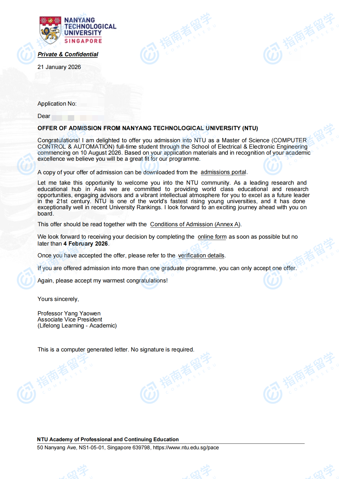 南洋理工大學(xué)計(jì)算機(jī)控制與自動(dòng)化理學(xué)碩士研究生offer一枚